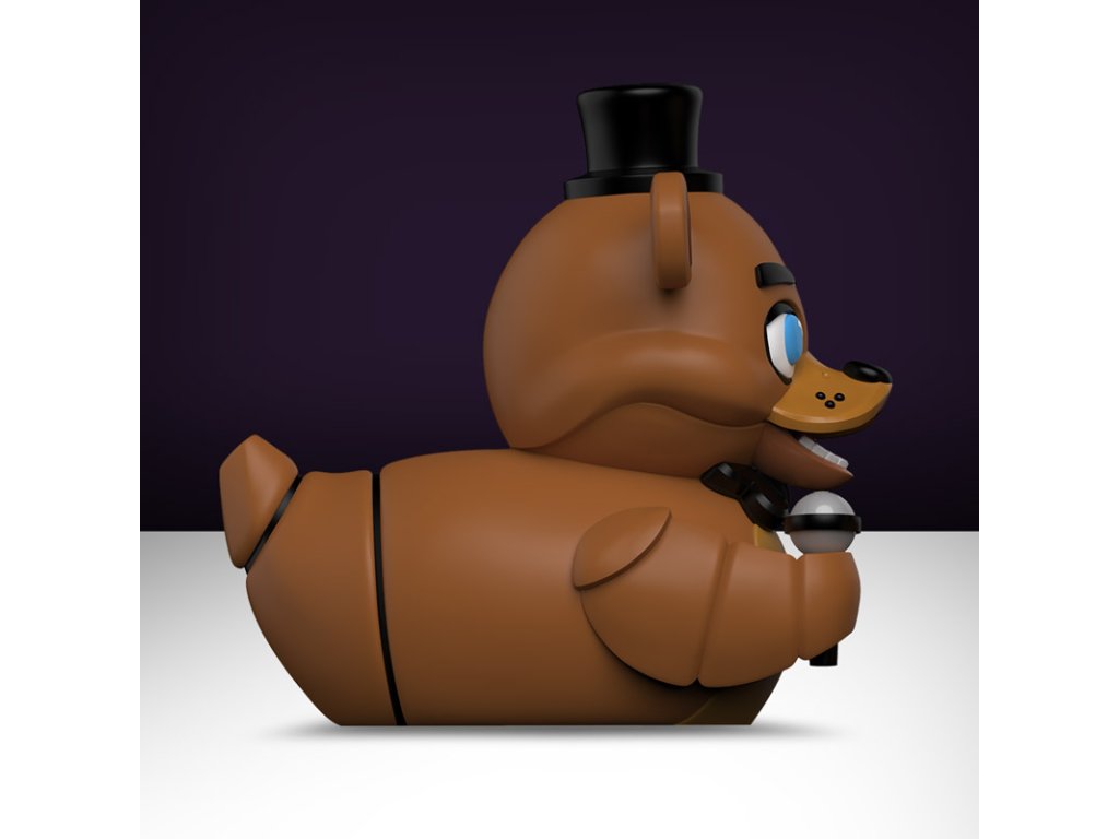 Přichází kačenka Freddy – s mikrofonem v ruce, motýlkem a buřinkou na hlavě, dokonale zvládá cosplayující kačenčí look. Tento oficiální sběratelský kousek Five Nights at Freddy’s TUBBZ je součástí oblíbené řady, která proměňuje herní, filmové i seriálové ikony v jedinečné kačenky!
