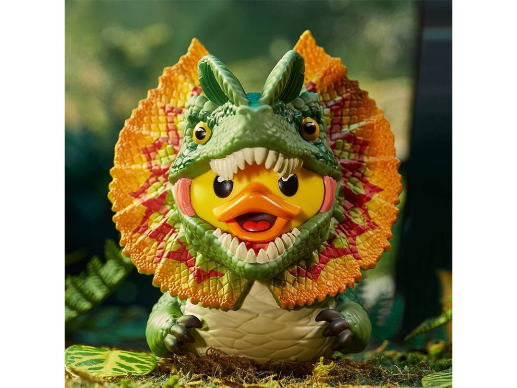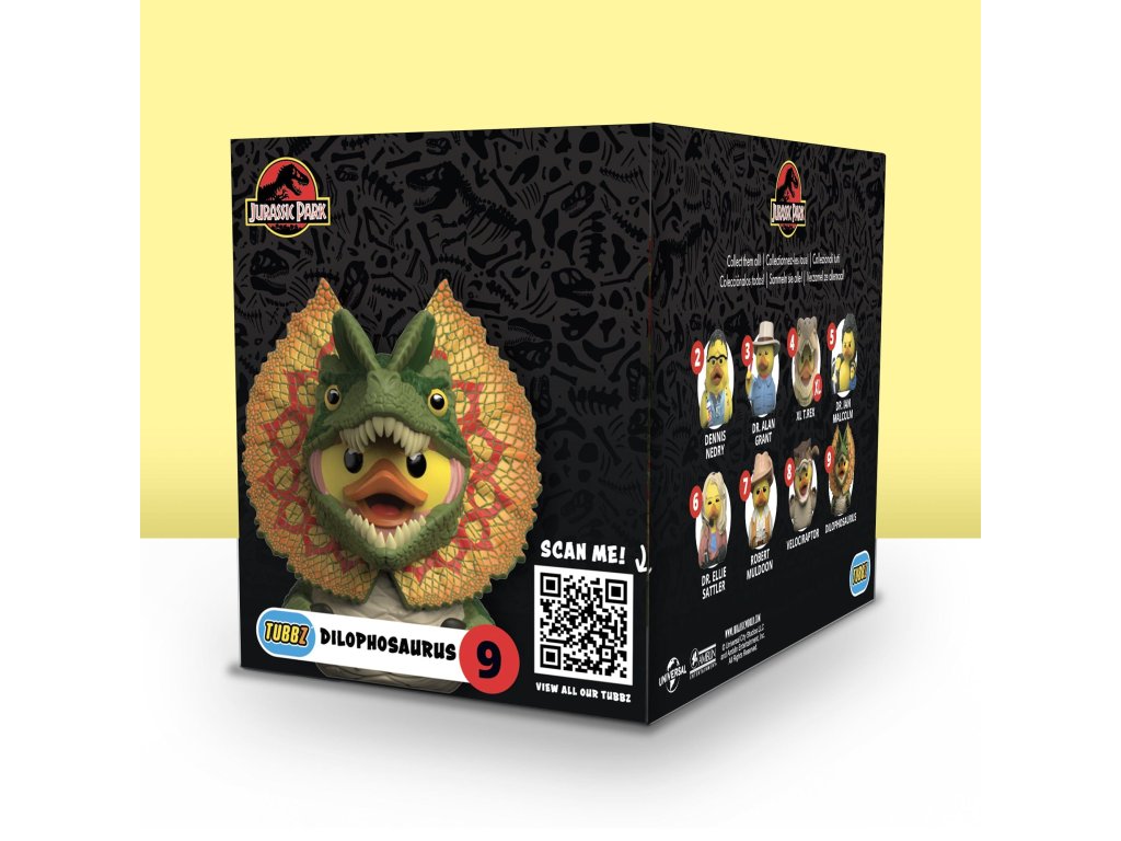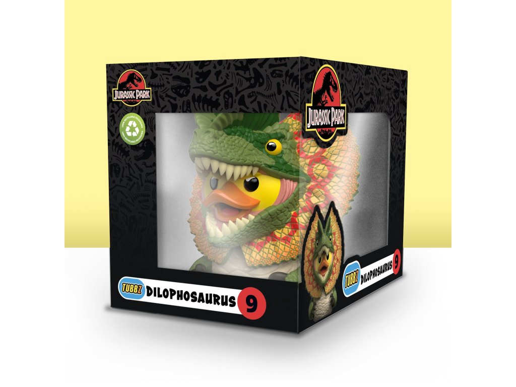 The Dilophosaurus is a very distinctive looking dinosaur, despite its new duck similarities. With striking features such as the rounded crests on its skull and the colourful head fan, visitors to Jurassic Park better beware, this TUBBZ is always hungry and looking for prey! Coming boxed in an awesome Jurassic Park themed display box, this one-of-a-kind collectable is the perfect gift for dinosaur enthusiasts of all ages.