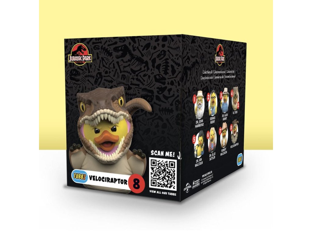 The first dinosaur to enter Jurassic Park, the Velociraptor is now heading to the duck pond as a cosplaying collectable TUBBZ. It could be having an identity crisis as it finds itself part dinosaur part duck, but Jurassic Park fans certainly know who it is! Coming boxed in an awesome Jurassic Park themed display box, this one-of-a-kind collectable is the perfect gift for dinosaur enthusiasts of all ages.