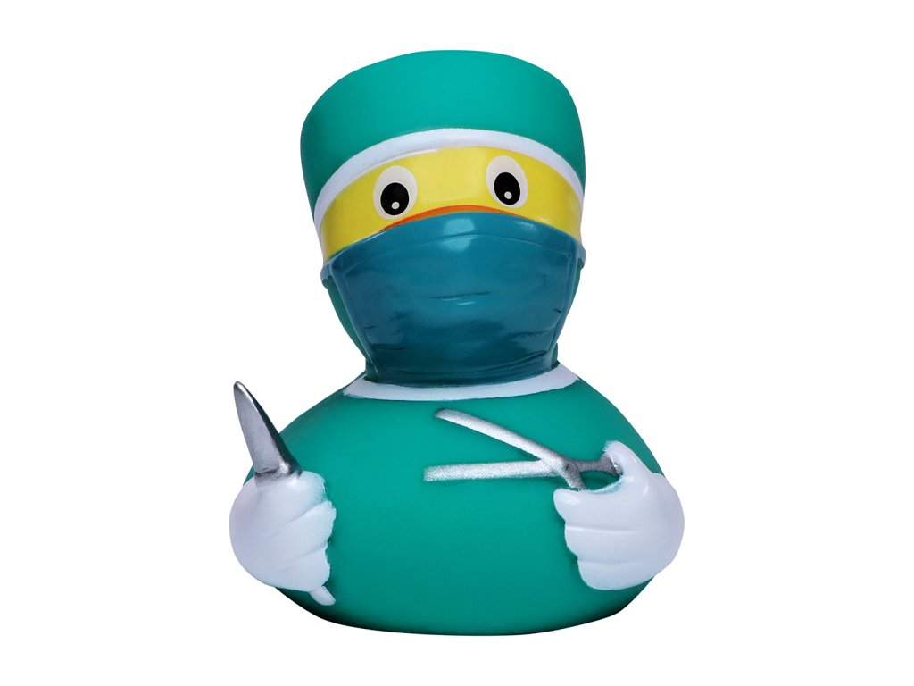 Zda tato gumová kachnička bude mít roli v Pohotovosti, není jisté. Se zeleným chirurgickým pláštěm, obličejovou maskou, skalpelem a svorkou v ruce však vypadá skvěle.