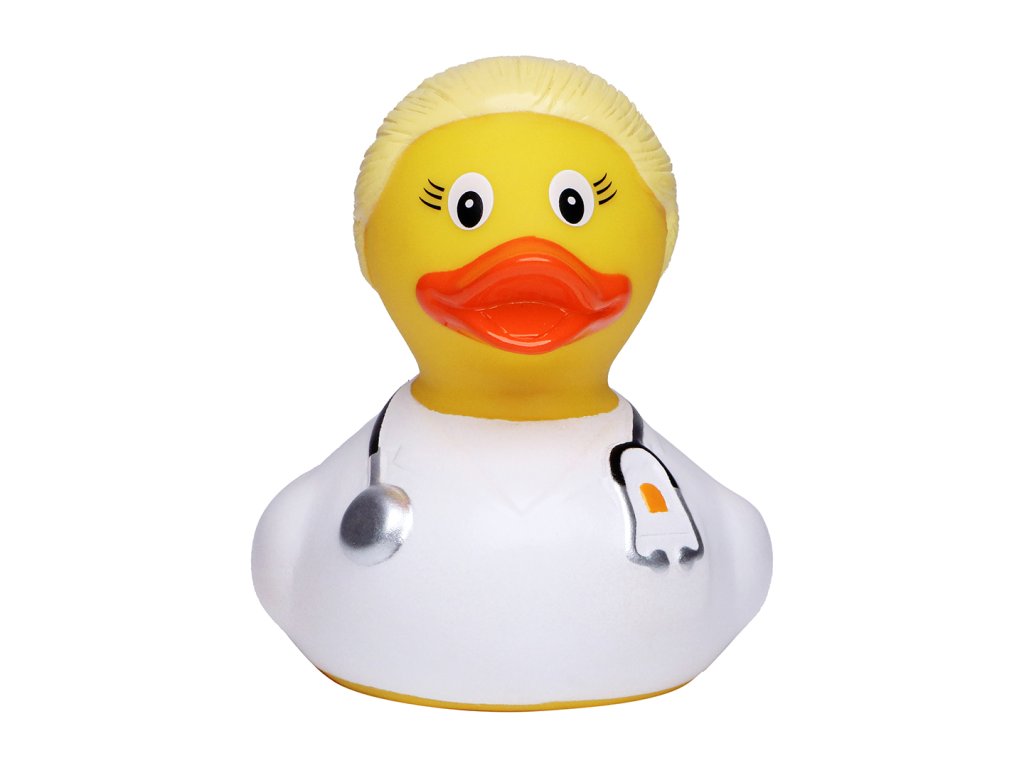 Naše blonďatá doktorka kachnička je víc než jen hračka do vany - je to věrná kamarádka, důvěryhodná společnice a určitě nejzábavnější doktorka, s jakou se kdy setkáte. Nenechte si ujít příležitost přidat do své sbírky tuto roztomilou, pískací rozkoš. Vaše koupele už nikdy nebudou jako dřív!