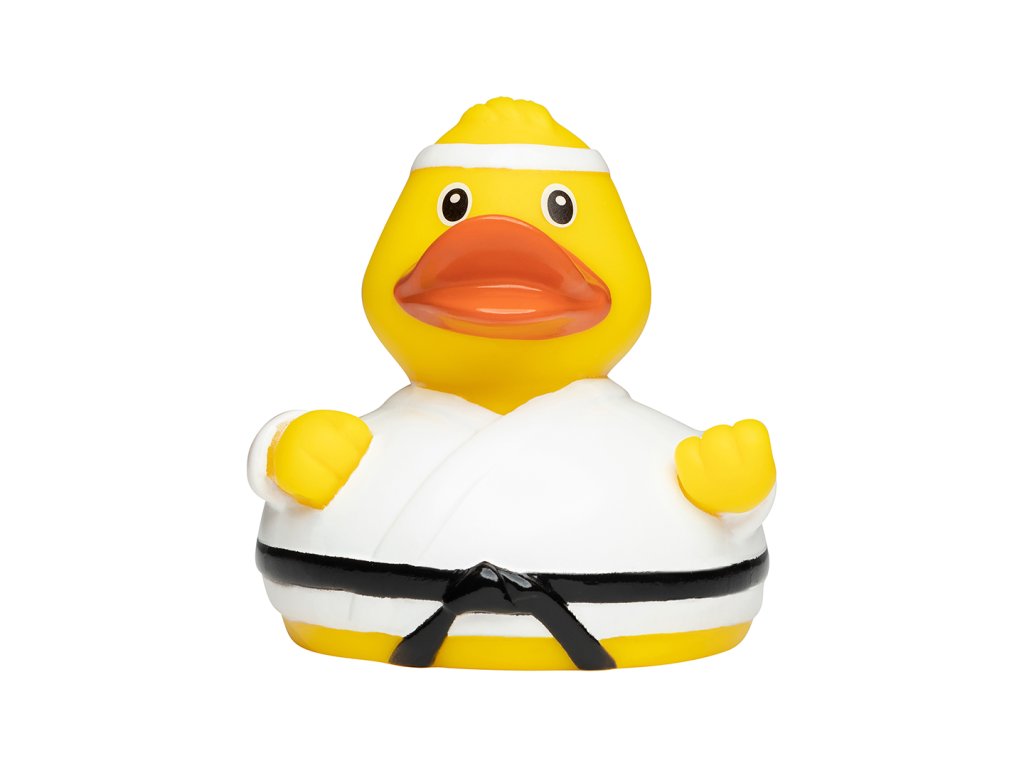 Díky svému černému pásu vyzařuje naše karate gumová kachna neuvěřitelnou sílu a vytrvalost. Je připravena dobýt vlny vany a porazit každého koupelnového padoucha. Tato malá elektrárna přinese smích a poskytne vám zážitek ze šplouchání.