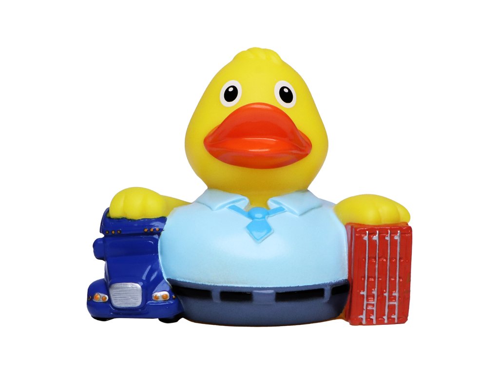 Naše kachna Spediteur, oblečená v elegantní modré košili, hrdě nese miniaturní náklaďák v jedné ruce a kontejner ve druhé. Kdo věděl, že koupel může být tak přenosně zábavná? S touto kachnou po boku se vydáte na nápadité cesty po volném moři ve své vlastní vaně.