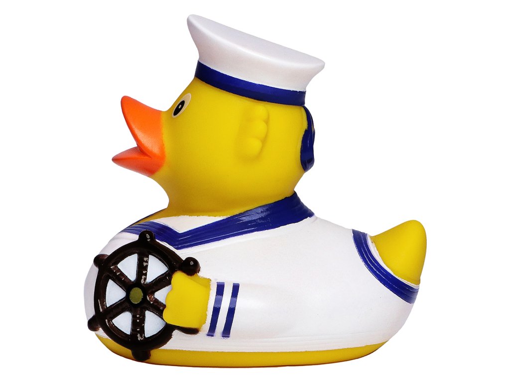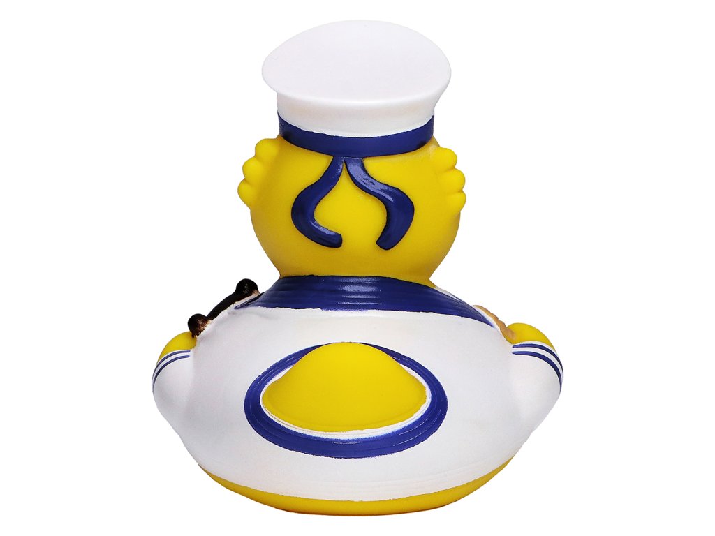 Vyplujte a připravte se na divokou jízdu s naší pískavou žlutou gumovou kachnou! Tento malý námořník je kapitánem koupelny a určitě vám vykouzlí úsměv na tváři. S kormidlem v ruce a v bílém námořnickém oděvu ztělesňuje klasické kouzlo mořeplavby.