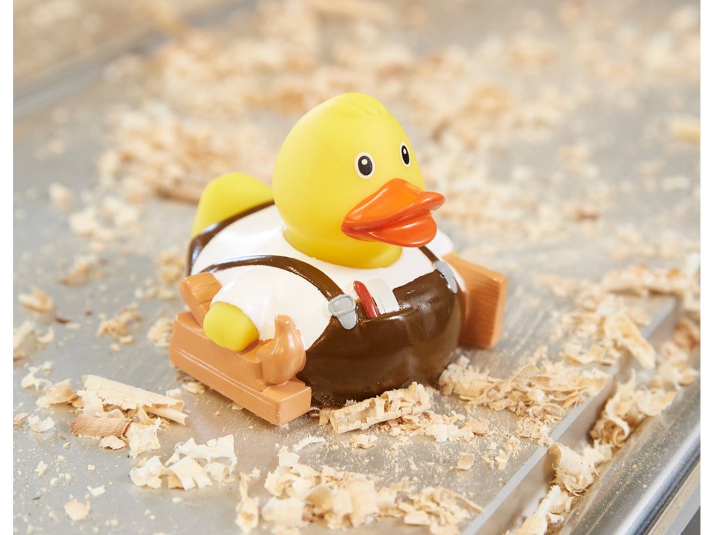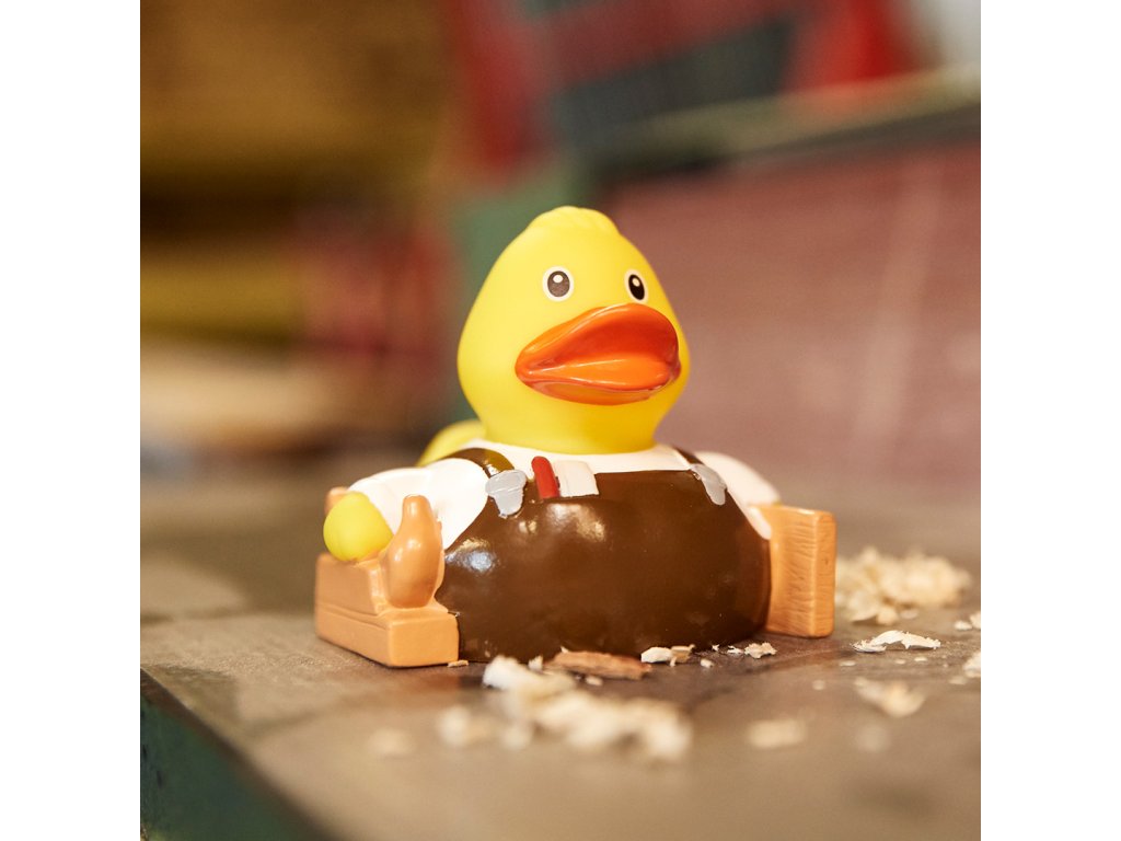 Naše gumová kachnička je skutečný mistr řemesla. V jedné ruce drží kus dřeva a v druhé nástroj, jako by říkal: "Mám to!" Ať už jste tesař nebo jen fanoušek řemesla, tato gumová kachnička vám zpříjemní koupání a vykouzlí úsměv na tváři.