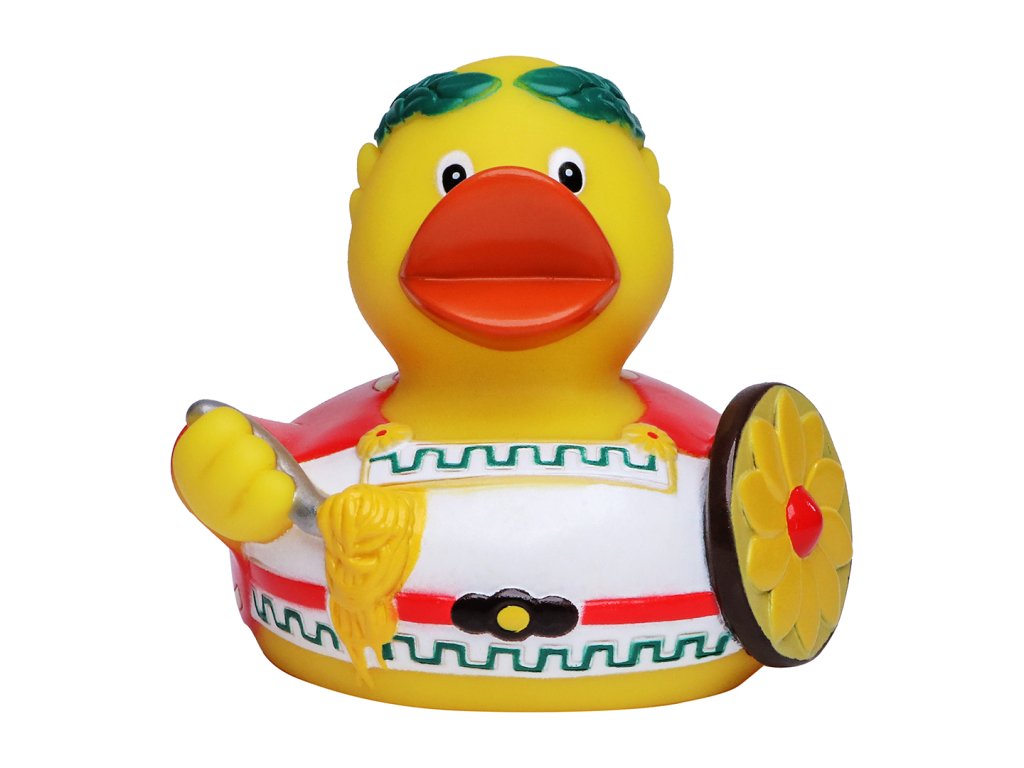 Tato gumová kachnička, vyrobená z vysoce kvalitního vinylu, hrdě stojí, v jedné ruce drží cedulku a ve druhé vidličku plnou těstovin. Symbolizuje vášeň a oddanost, které přivádějí italské hlavní město k životu. Nechte se inspirovat Římanem a přineste si kousek této nádherné kultury přímo do vany.
