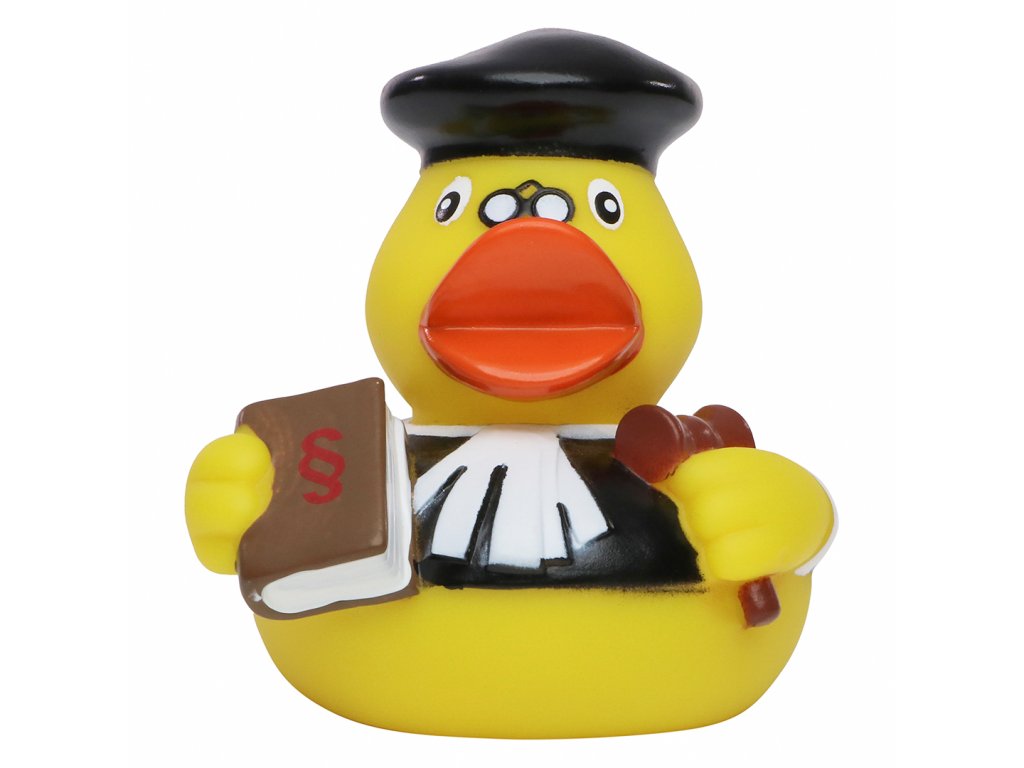 Vinen nebo nevinen? Rozhoduje o tom naše kachnička Soudce. S kladivem a právnickou knihou v ruce naše gumová kachnička vždy rozhodne ve prospěch svého majitele.