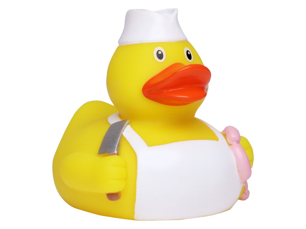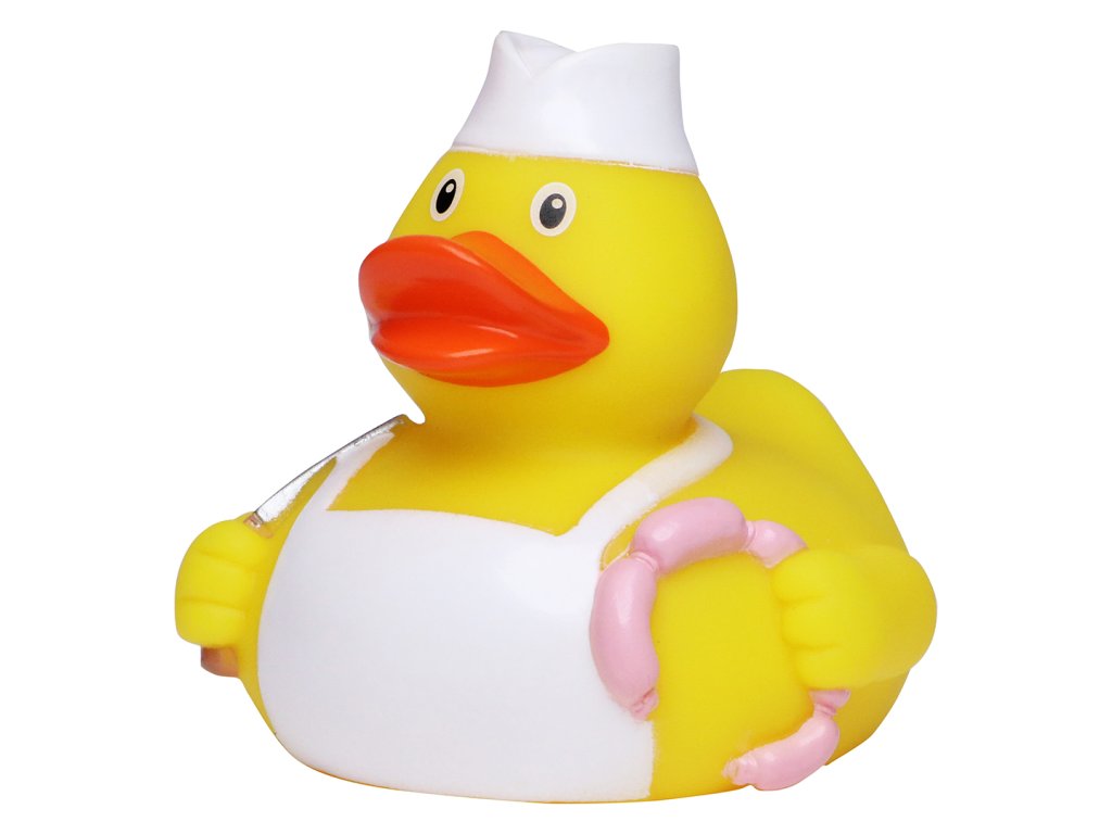 Představujeme Butcher Duck – vašeho dokonalého společníka při koupeli s veselým zvratem! Tato svérázná gumová kachnička je vyzbrojena malým sekáčkem a dokonce nese šňůru párků. Připravte se na skvělou zábavu!