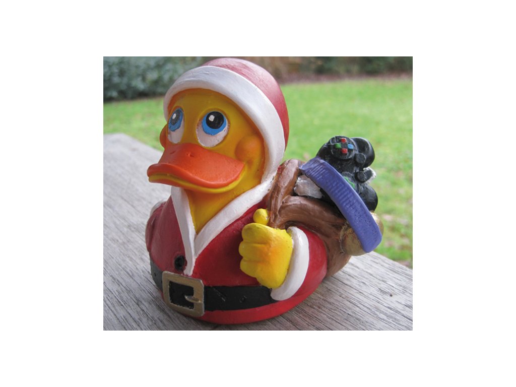 Vánoční Santa Duck od Lanco. V pytli má mimo jiné herní konzoli.