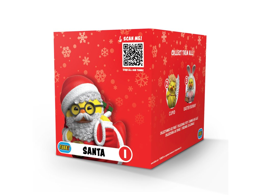 Santa Claus přichází do kachního světa! Santa je zpět jako sběratelská krabicová edice TUBBZ. Dodáván ve stylové krabičce, je nutností pro fanoušky TUBBZ a vánoční fanoušky, ho ho ho! Připojte se ke sběratelským předmětům TUBBZ cosplaying gumových kachniček a vzdejte hold legendárním postavám ze světa pop kultury... a Vánoc!