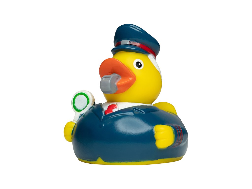 Představte si, že máte ve vaně miniaturního železničního průvodčího oblečeného v zářivě modré uniformě. Tento rozkošný malý šarlatán je připraven převzít vedení a zajistit hladký zážitek z koupání. Díky detailnímu designu a výrazným modrým očím je těžké si tohoto veselého chlapíka nezamilovat.