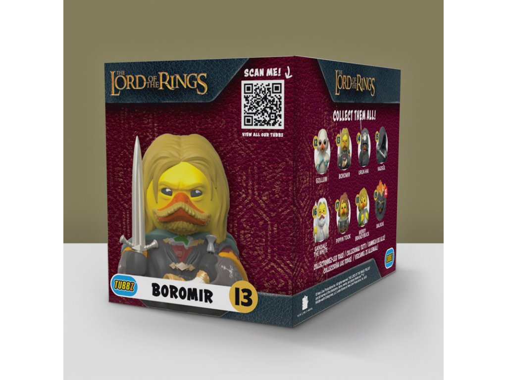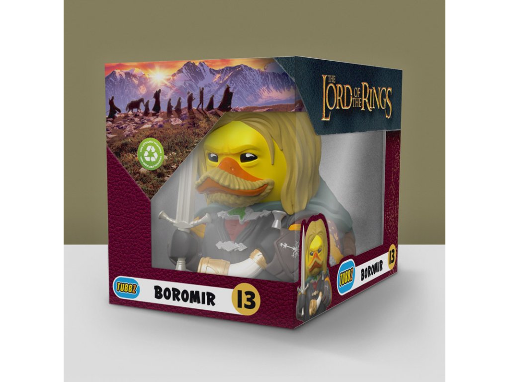 Boromir, renowned for his valiant deeds in Gondor and his unforgettable declaration about the perils of Mordor, is celebrated as a fearless warrior and a pivotal member of the Fellowship of the Ring. His bravery and complex character are immortalized in this unique TUBBZ cosplaying duck collectible. This piece not only captures Boromir’s heroic essence but also pays homage to his significant role within "The Lord of the Rings" saga. Presented in an eye-catching "Lord of the Rings" branded display box, this collectible is an excellent addition for any fan of the series. It's perfect for those looking to showcase their admiration for one of Middle-earth’s most memorable heroes, adding a touch of valor and lore to their collection. Official Lord of the Rings merchandise. Designed and engineered by Numskull Designs. TUBBZ – your favourite video game, movie, TV show, and comic book characters come to life as cosplaying ducks. Boxed TUBBZ Edition. Collect them all - #13 in the Lord of the Rings TUBBZ range. Premium collectibles – highly detailed features and made from high quality PVC. Approximately 3.54” (9cm) tall.