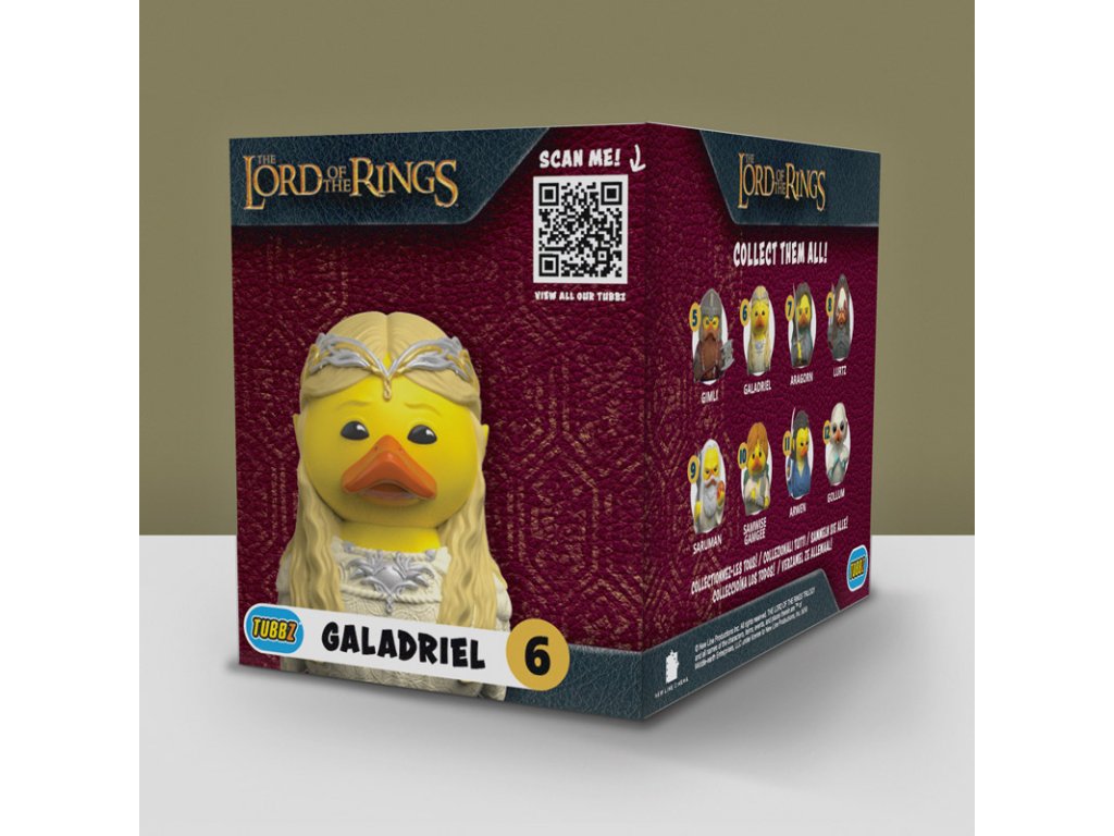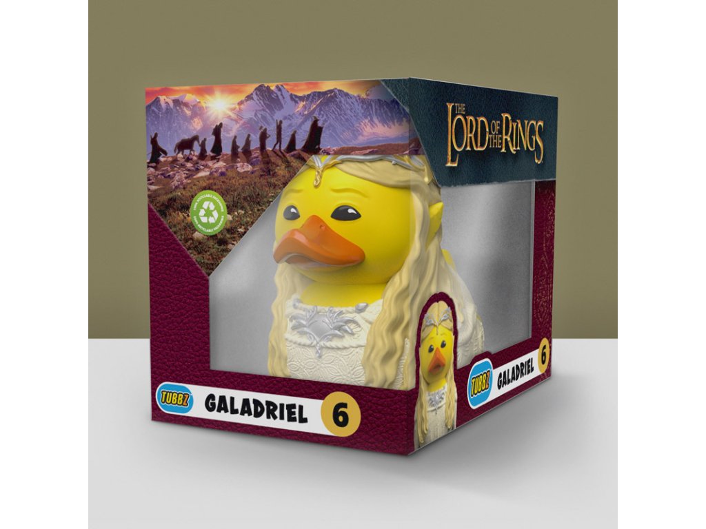 Even in the whimsical form of a TUBBZ cosplaying duck, Galadriel retains her stature as one of the most esteemed Elves in Middle-earth. As the keeper of Nenya, one of the three great Elven Rings, her depiction captures her beauty, power, and wisdom. This unique collectible showcases Galadriel’s majestic essence, even in duck form, making it a distinctive and enchanting addition to any "Lord of the Rings" collection. Presented in a striking "Lord of the Rings" branded display box, this Galadriel duck is perfect for fans looking to enhance their collection with a touch of Elven royalty. It's an ideal piece for admirers of Tolkien's work and a must-have for those who celebrate the enduring legacy and profound depth of "The Lord of the Rings. Official Lord of the Rings merchandise. Designed and engineered by Numskull Designs. TUBBZ – your favourite video game, movie, TV show, and comic book characters come to life as cosplaying ducks. Boxed TUBBZ Edition. Collect them all - #6 in the Lord of the Rings TUBBZ range. Premium collectibles – highly detailed features and made from high quality PVC. Approximately 3.54” (9cm) tall.