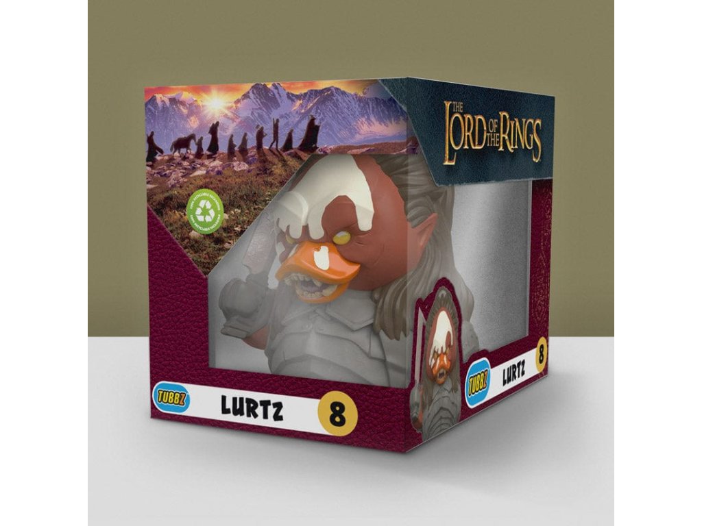 Lurtz, the formidable first leader of the Uruk-hai and Saruman's trusted lieutenant, has earned his reputation as one of the most ruthless Orcs in Sauron's service. His fearsome nature and strategic prowess make him a critical figure in the Middle-earth saga, a status that remains undiminished even as he's humorously reimagined as a TUBBZ cosplaying duck. This collectible captures the essence of Lurtz’s intimidating presence, offering a unique twist on his character. Presented in a striking "Lord of the Rings" branded display box, this Lurtz duck is an exceptional piece for fans of the series. It’s perfect for collectors looking to add a touch of Middle-earth’s darker side to their assortment, blending iconic lore with playful design. Official Lord of the Rings merchandise. Designed and engineered by Numskull Designs. TUBBZ – your favourite video game, movie, TV show, and comic book characters come to life as cosplaying ducks. Boxed TUBBZ Edition. Collect them all - #8 in the Lord of the Rings TUBBZ range. Premium collectibles – highly detailed features and made from high quality PVC. Approximately 3.54” (9cm) tall.