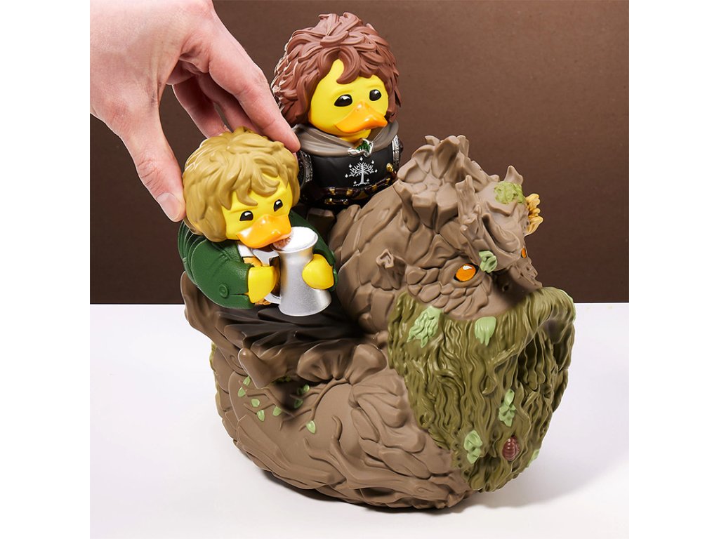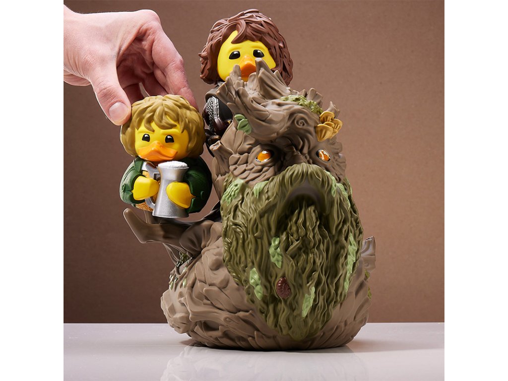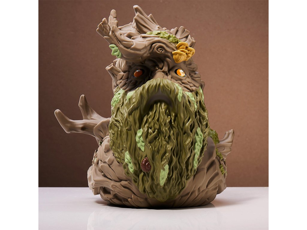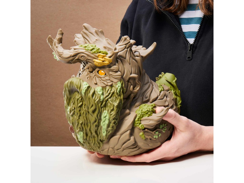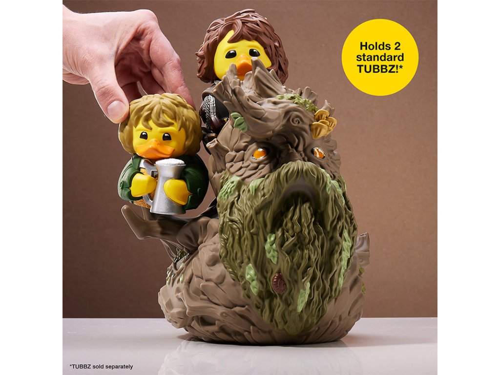 A towering figure both in the forests of Middle-earth and now in your collection, Treebeard, the ancient guardian of the trees in Fangorn Forest and ally to the Hobbits, has been splendidly transformed into a mighty XL TUBBZ. This figure is 150% larger than a standard TUBBZ, standing at an impressive 8.6 inches (21.9cm) tall. Ingeniously designed with room on his shoulders to support two regular-sized TUBBZ, this collectible perfectly captures Treebeard's role as a protector, able to shield Hobbits and perhaps even smaller TUBBZ from danger. This Treebeard TUBBZ brings a piece of Middle-earth into your home, blending the magic of Tolkien's world with the whimsical charm of the TUBBZ series. It's an ideal addition for fans of "The Lord of the Rings," offering a novel way to celebrate a beloved character in a fun, collectible form. Official Lord of the Rings merchandise. Designed and engineered by Numskull Designs. TUBBZ – your favourite video game, movie, TV show, and comic book characters come to life as cosplaying ducks. XL TUBBZ Edition. Two standard sized TUBBZ can be placed on it (not included). Collect them all - #21 in the Lord of the Rings TUBBZ range. Premium collectibles – highly detailed features and made from high quality PVC. Our biggest TUBBZ yet - approximately 8.6” (21.9cm) tall, 150% larger than a standard sized TUBBZ!