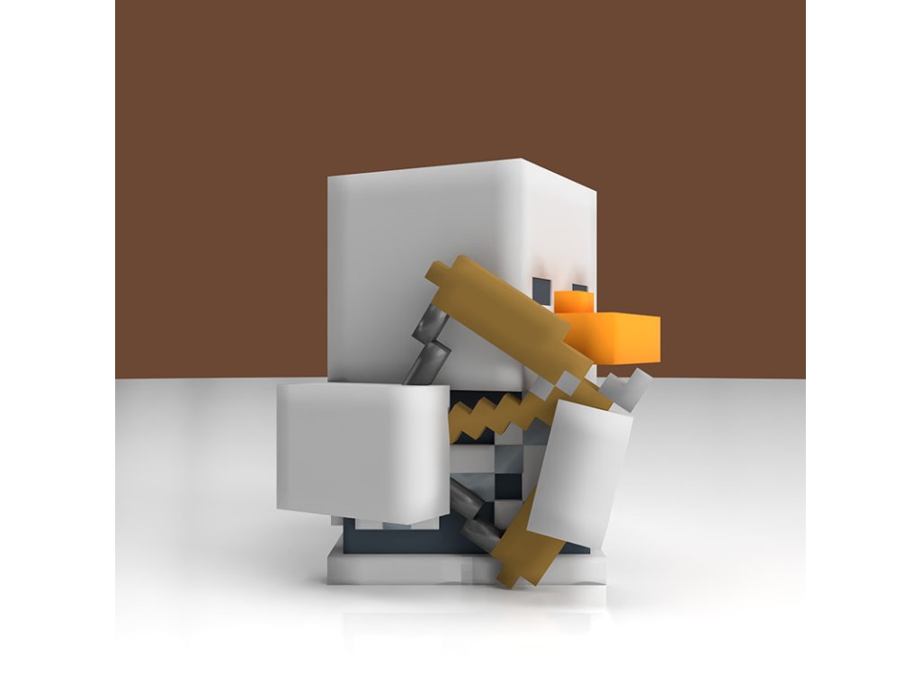 Tato ikonická postava ze světa Minecraft byla přetvořena do podoby stylové kachničky – nechybí jí typický pixelový luk ani prázdný pohled dutých očí. Ať už se skrývá ve stínu, nebo se vyjímá na vaší poličce, tento strašidelný Skeleton je nepostradatelným kouskem pro každého fanouška Minecraftu!