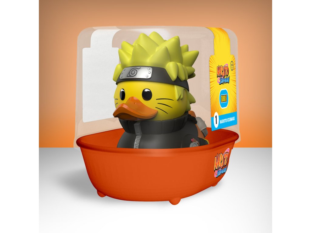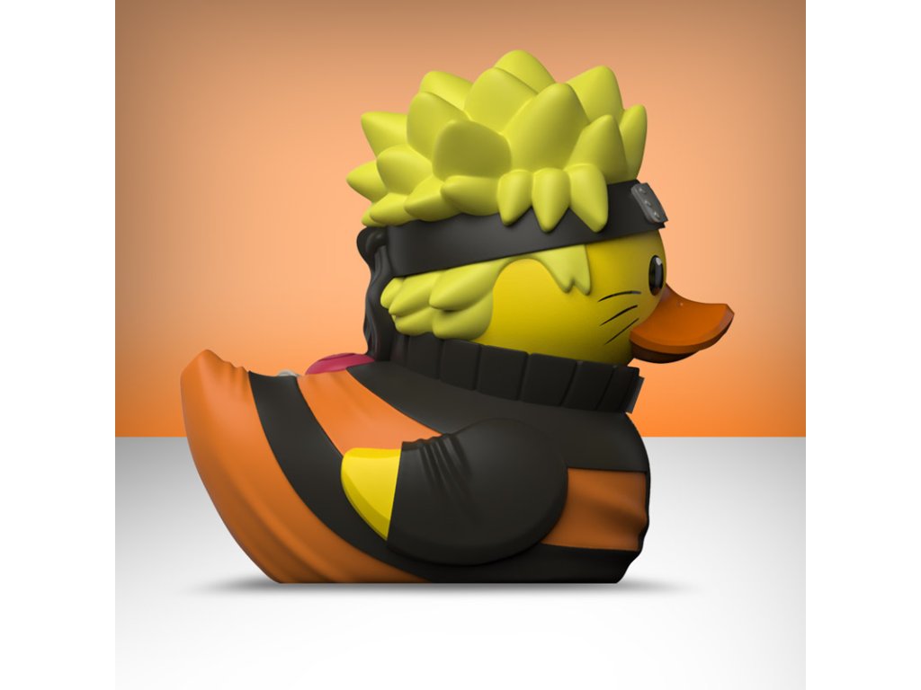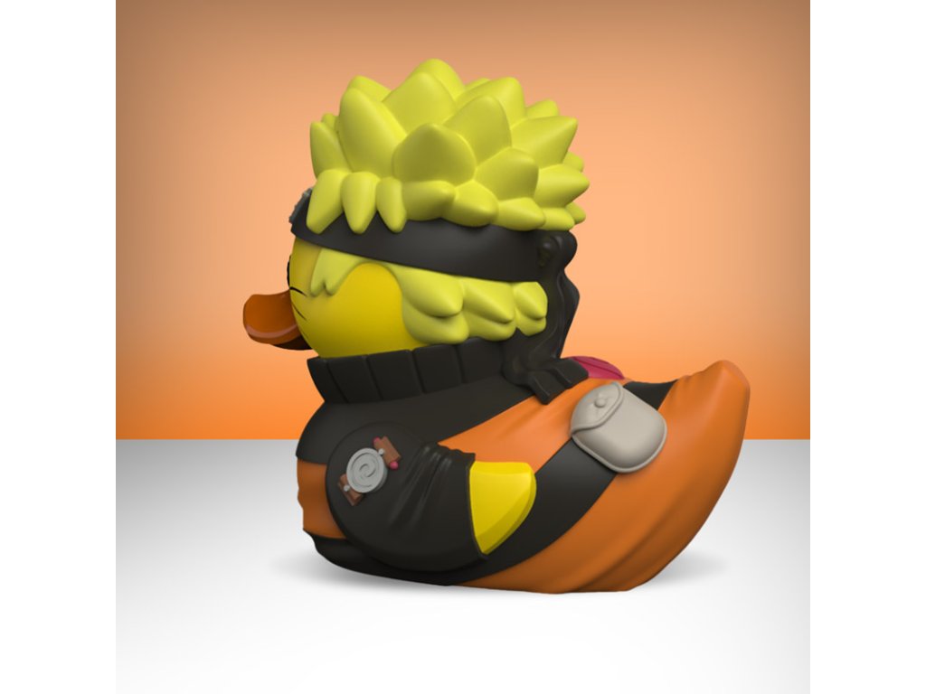 Fanoušci Naruta si zamilují tuto hravou předělávku jejich oblíbeného milovníka rámenů – tentokrát jako roztomilou gumovou kachničku. Nechybí ikonická oranžová kombinéza, čelenka s listovým znakem a odhodlaný výraz, který přímo křičí: „Věř tomu!“