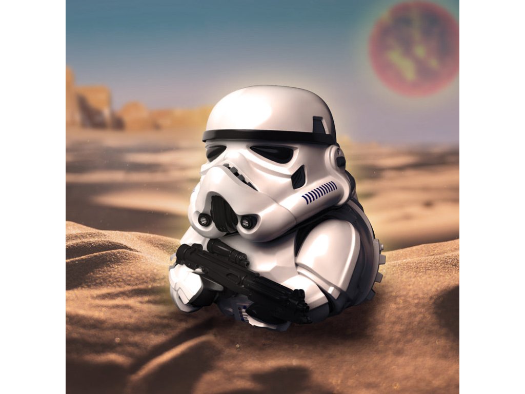 Attention! Calling Stormtrooper fans, here is a cosplaying collectable just for you. Original Stormtrooper has had a quacking makeover to become a TUBBZ cosplaying duck. This duck-trooper looks the part wearing the signature white armour and helmet. Simply a must for fans.