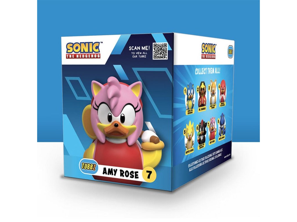 Ve svých ikonických červených šatech a s kladivem v ruce je Amy Rose odhodlaná získat srdce Sonica a nic ji nezastaví – ani fakt, že se proměnila v kačenku! Tento sběratelský kousek je prezentován v nádherné krabičce s logem Sonic the Hedgehog a bude ozdobou každé kolekce.
